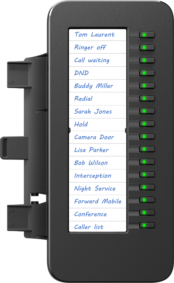 Konsole Key Module to dodatkowe panele z przyciskami i diodami LED, które umożliwiają szybkie wybieranie numerów, monitorowanie zajętości linii i natychmiastowe przekazywanie rozmów. Dzięki temu obsługa połączeń w sekretariatach, recepcjach czy działach administracyjnych staje się szybsza i bardziej intuicyjna. Każda konsola oferuje do 24 przycisków, a do jednego telefonu można podłączyć nawet kilka modułów, co pozwala dopasować układ do liczby użytkowników lub działów.